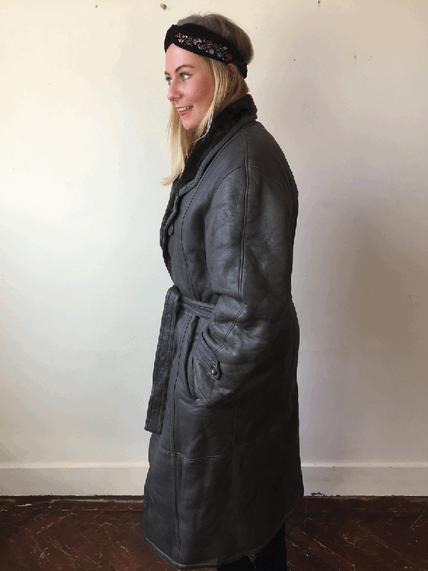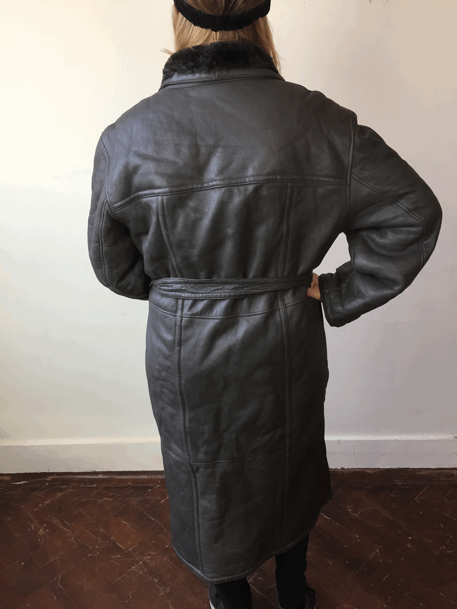Unisex Zwarte leren lammy coat - L/XL