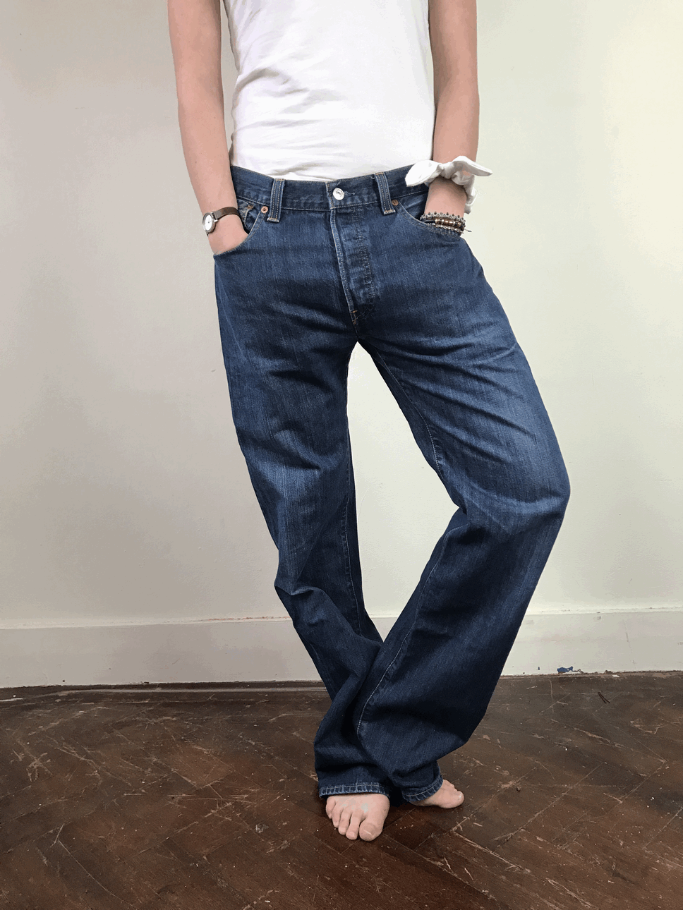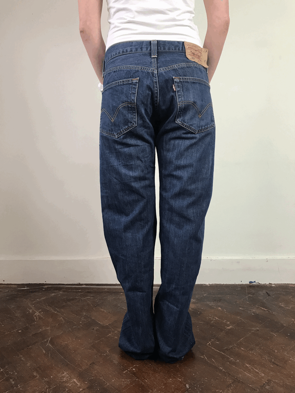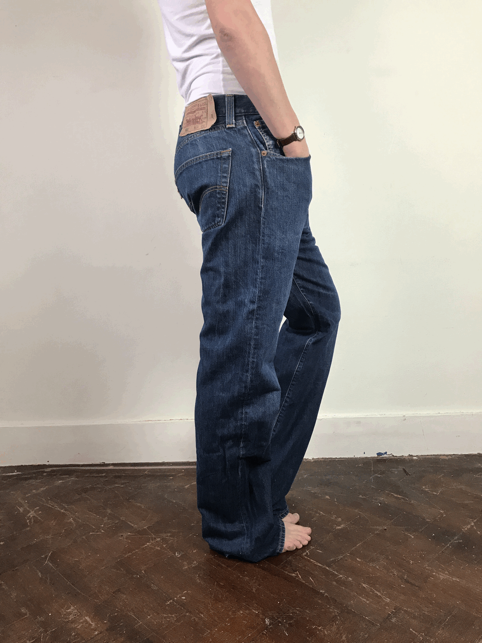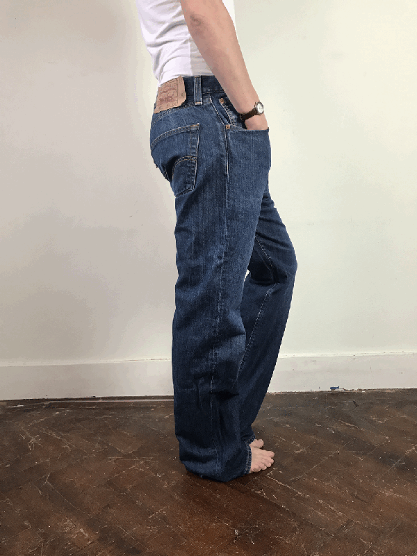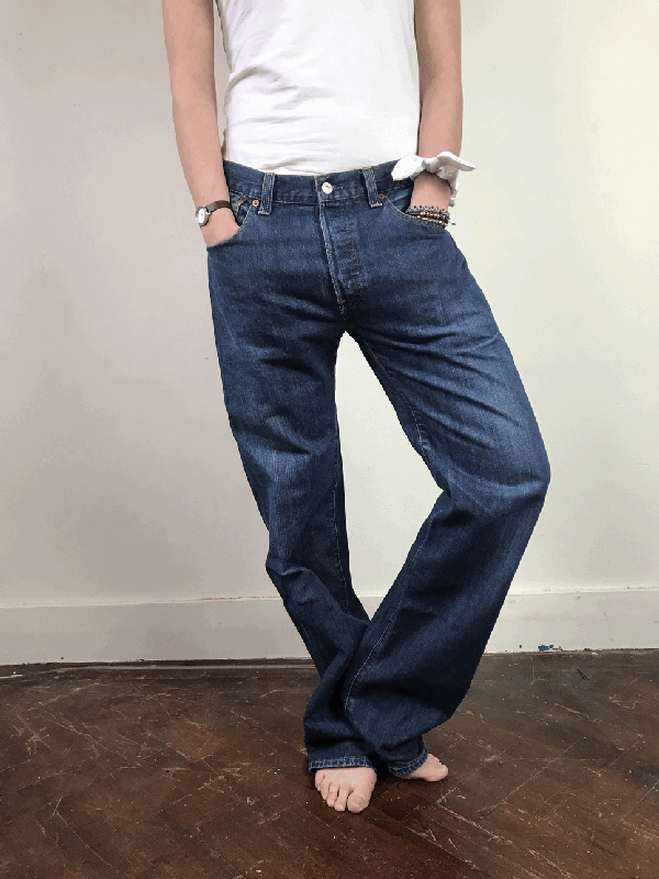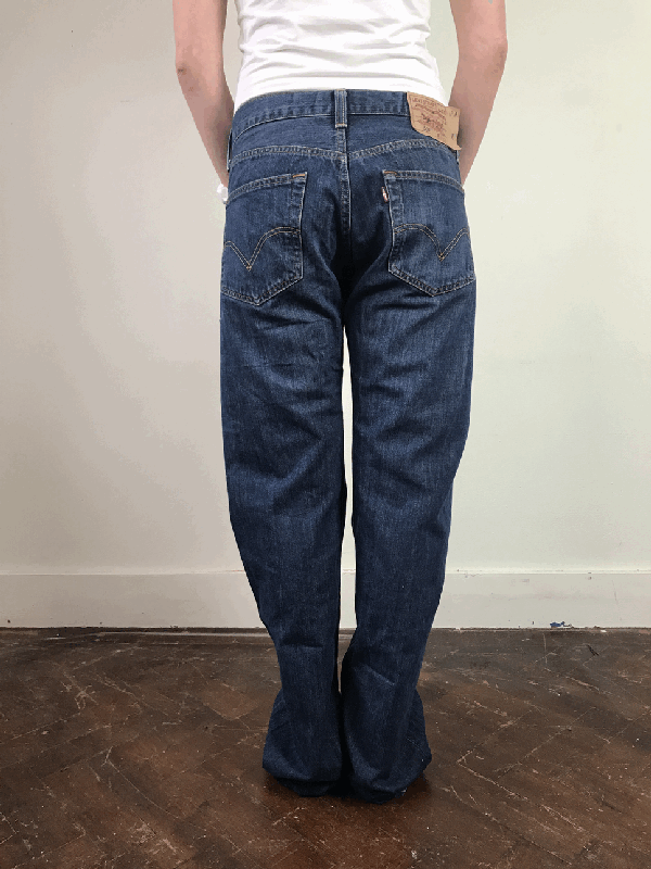 Deze levis is een model met brede pijp. Je kan het model zowel high wasted dragen als baggy.