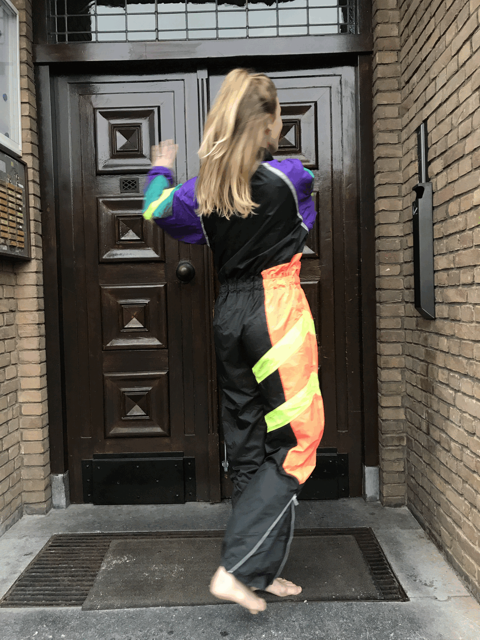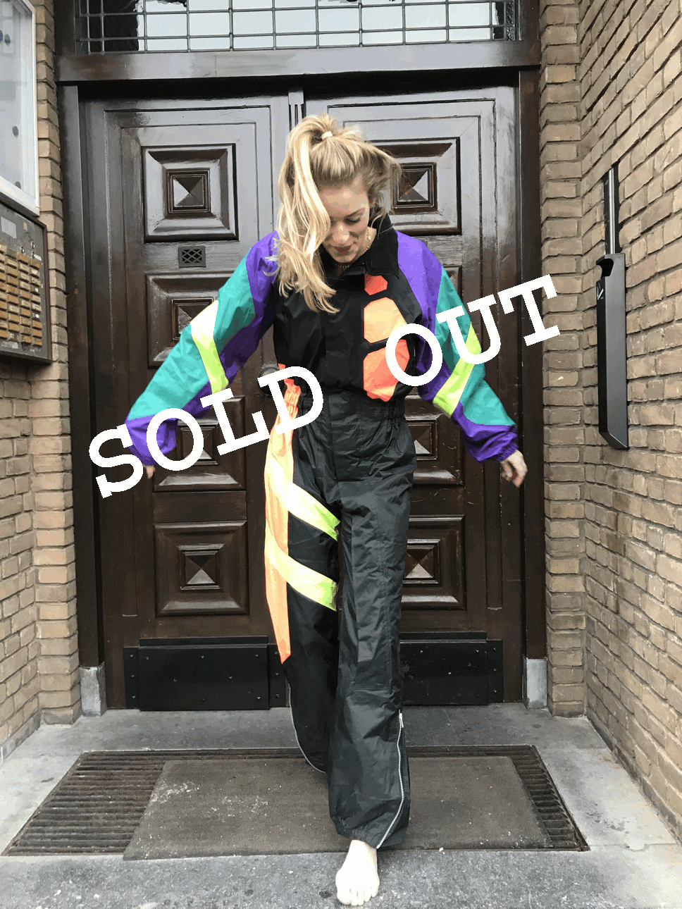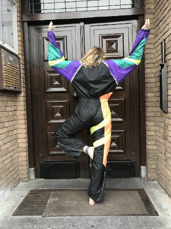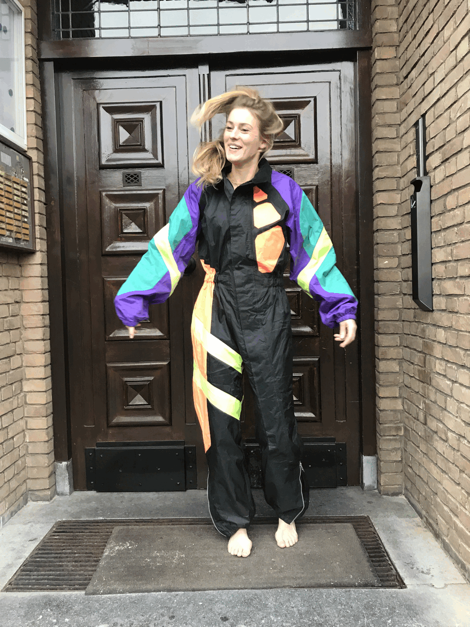 Speciaal skipak voor een fout feestje of mooi weer. Het skipak is gemaakt van een windjack stof. Het pak is in erg goede staat!