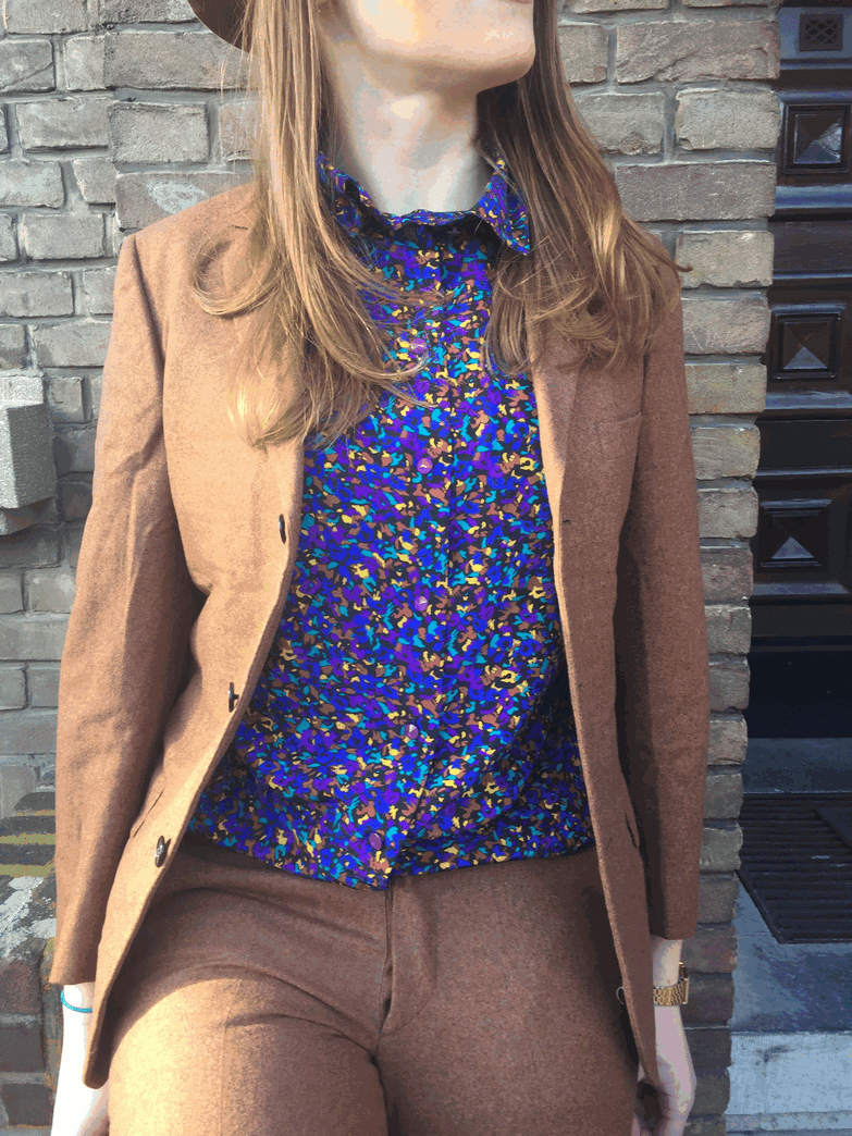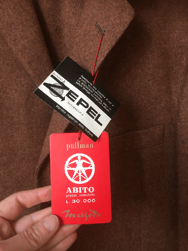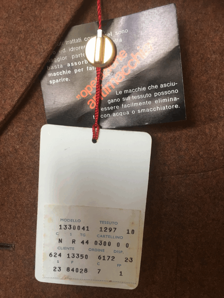 Orgineel deadstock pak uit de jaren 70! Het kaartje zit er zelfs nog aan. Het pak is gemaakt van wol. De kleur is cognac.