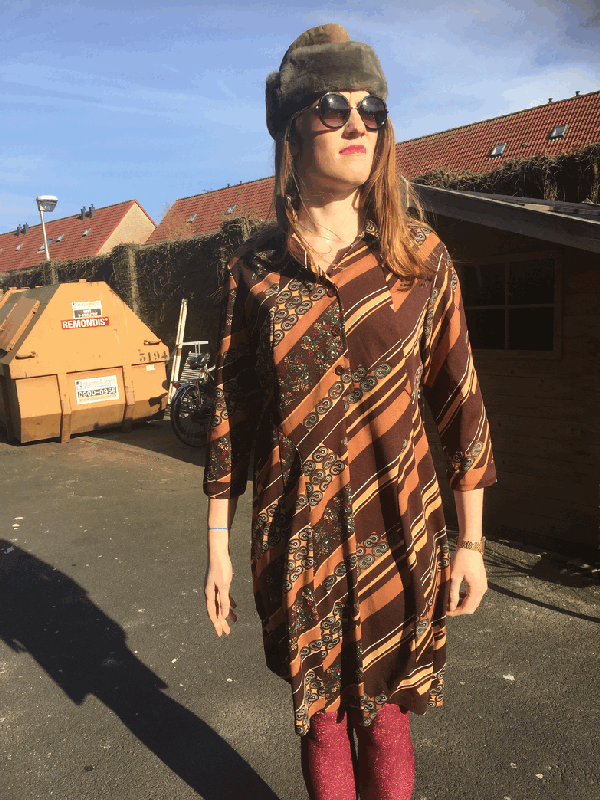 Vintage orginal 70's dress brown M/L